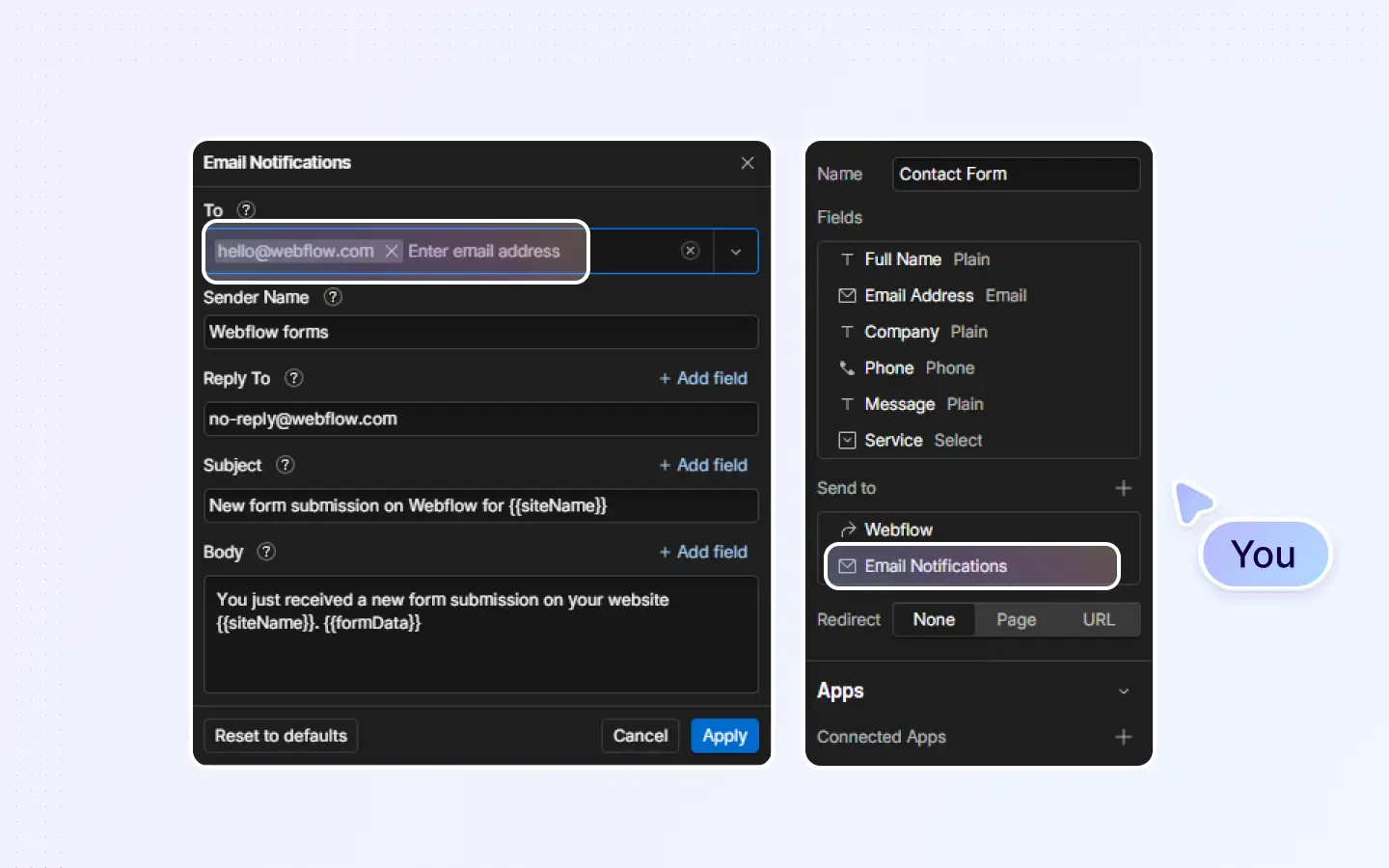 Reconnect email address to Webflow form submissions